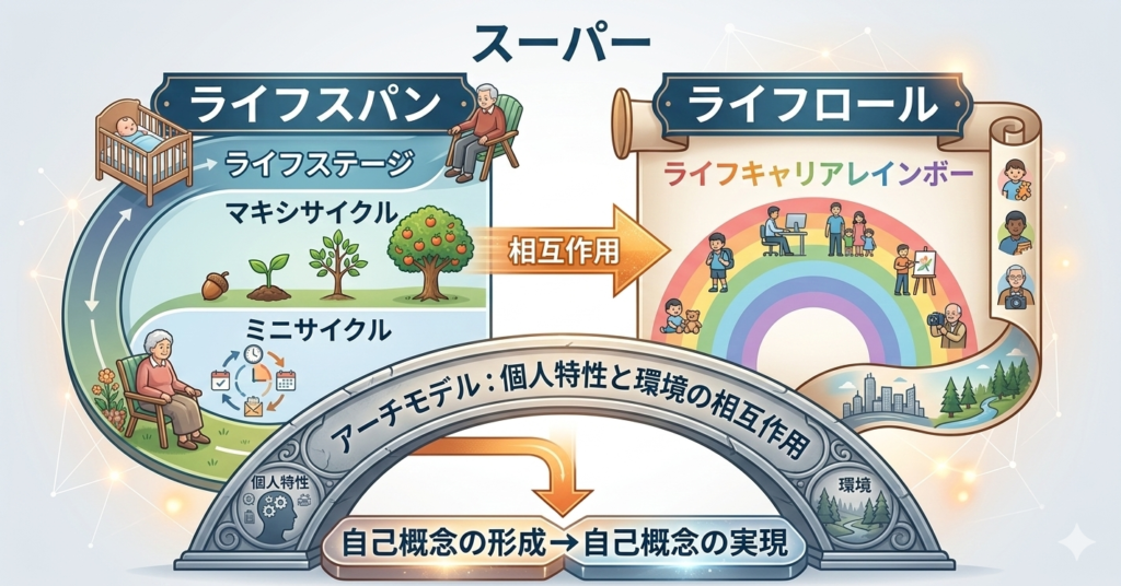 などを中心に、スーパーのキャリア発達理論をわかりやすく解説します。